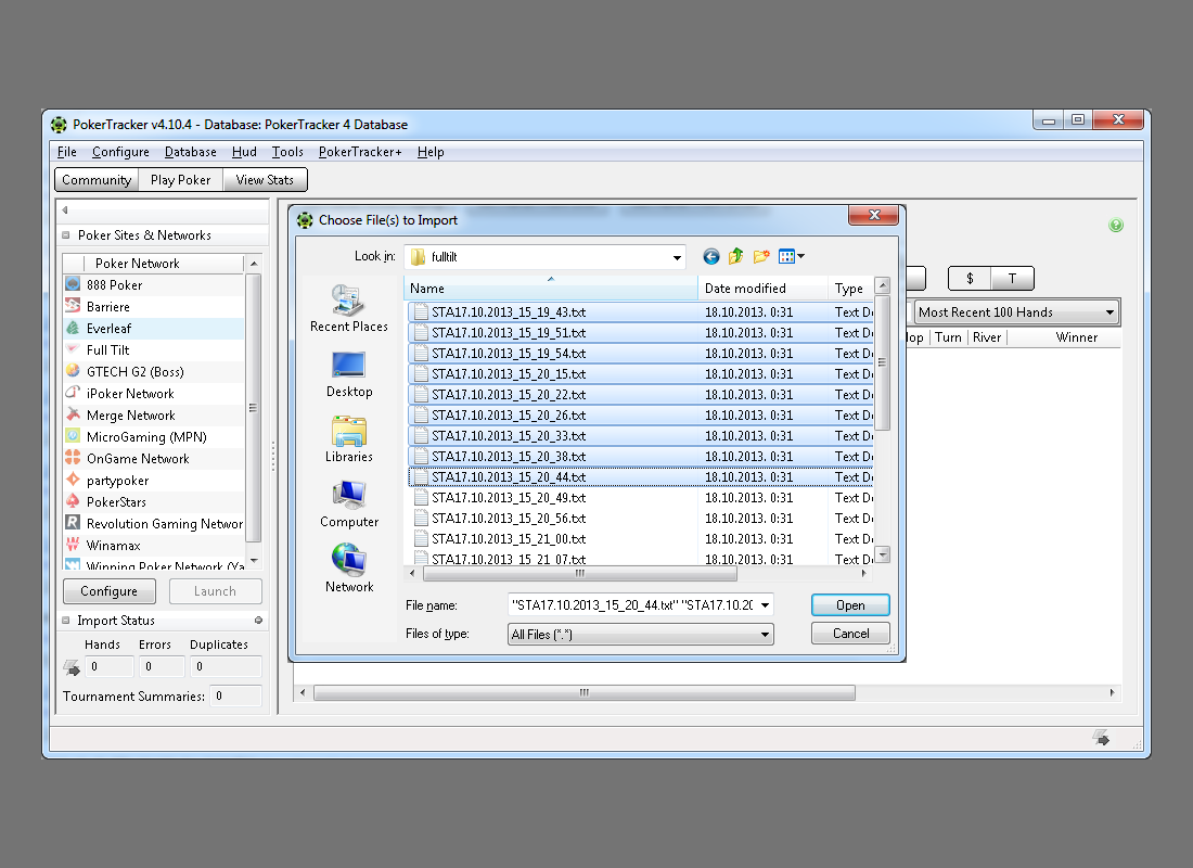 For a more detailed overview of the PokerTracker import section visit the PokerTracker website please.